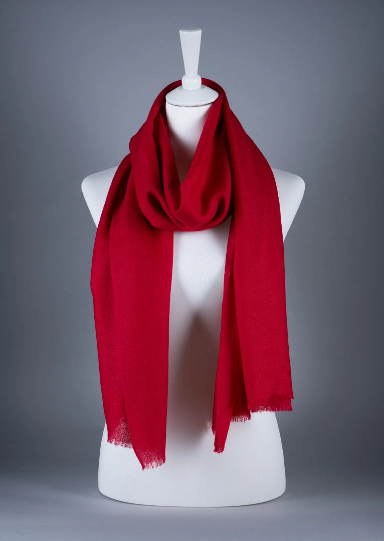 Luxuriöser, kuschelweicher, extrafeiner Kaschmir-Schal. Der satte Cranberry-Ton ist ein wahres Highlight! Er verleiht Ihrem Auftritt eine kraftvolle, elegante Ausstrahlung.