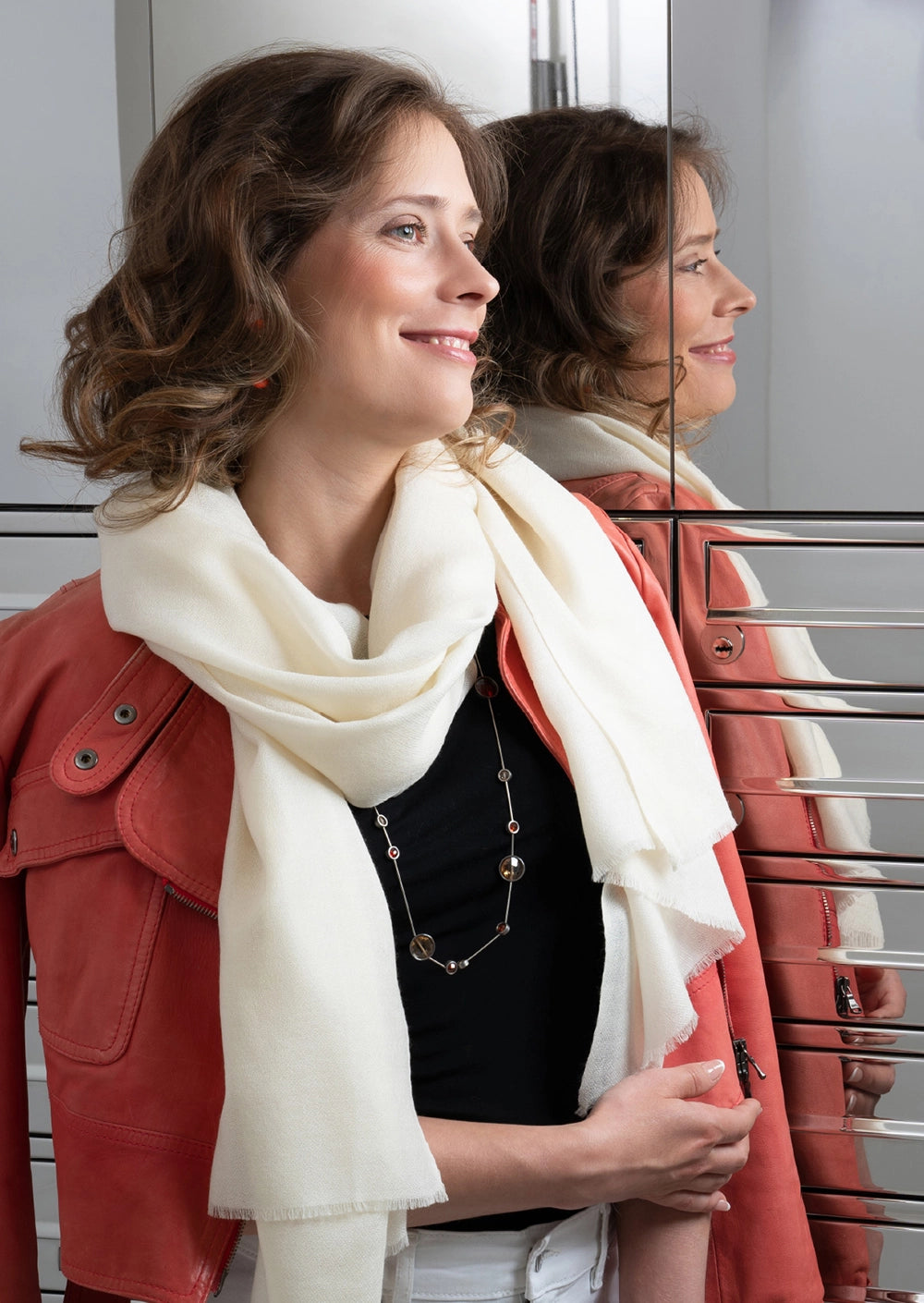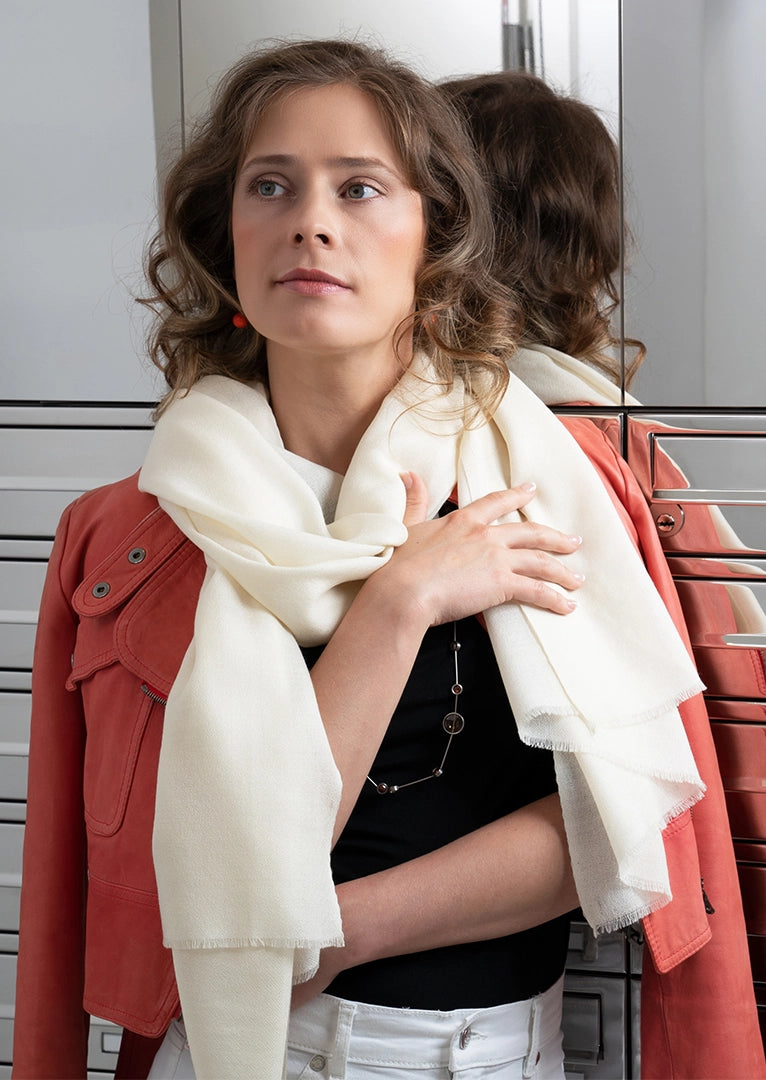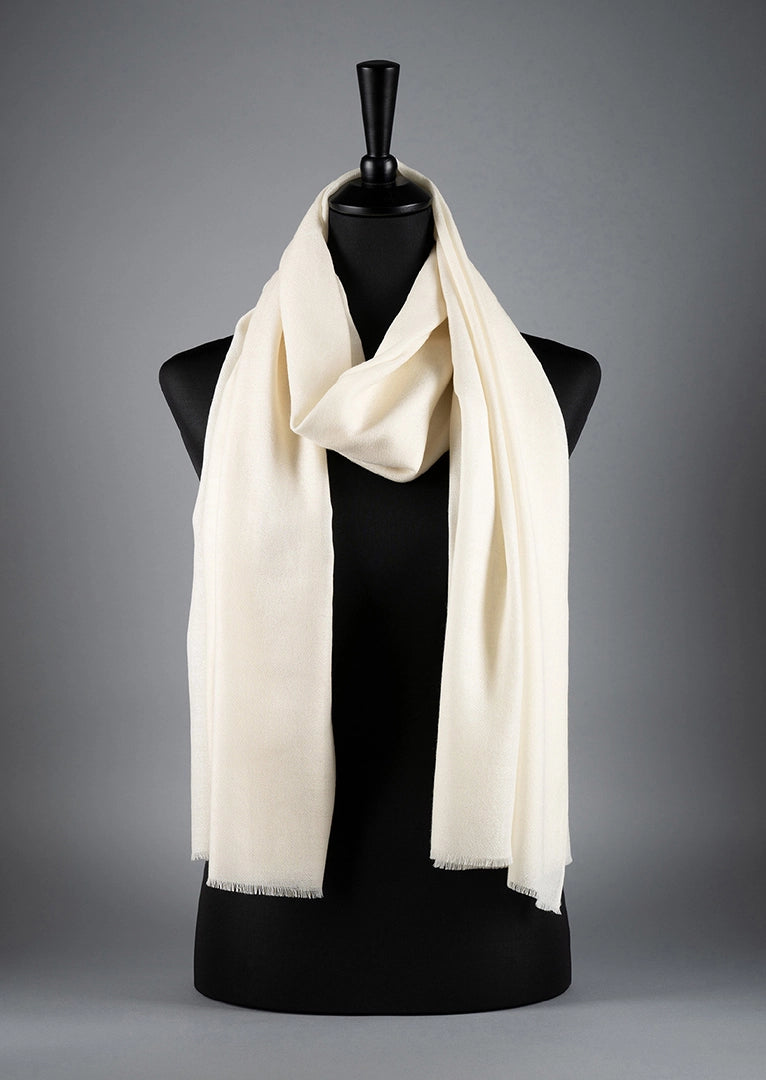 Luxuriöser, kuschelweicher, extrafeiner Kaschmir-Schal. Die Farbe Elfenbein ist ein beliebter Allrounder und mit jeder anderen Farbe Ihres Looks kombinierbar.