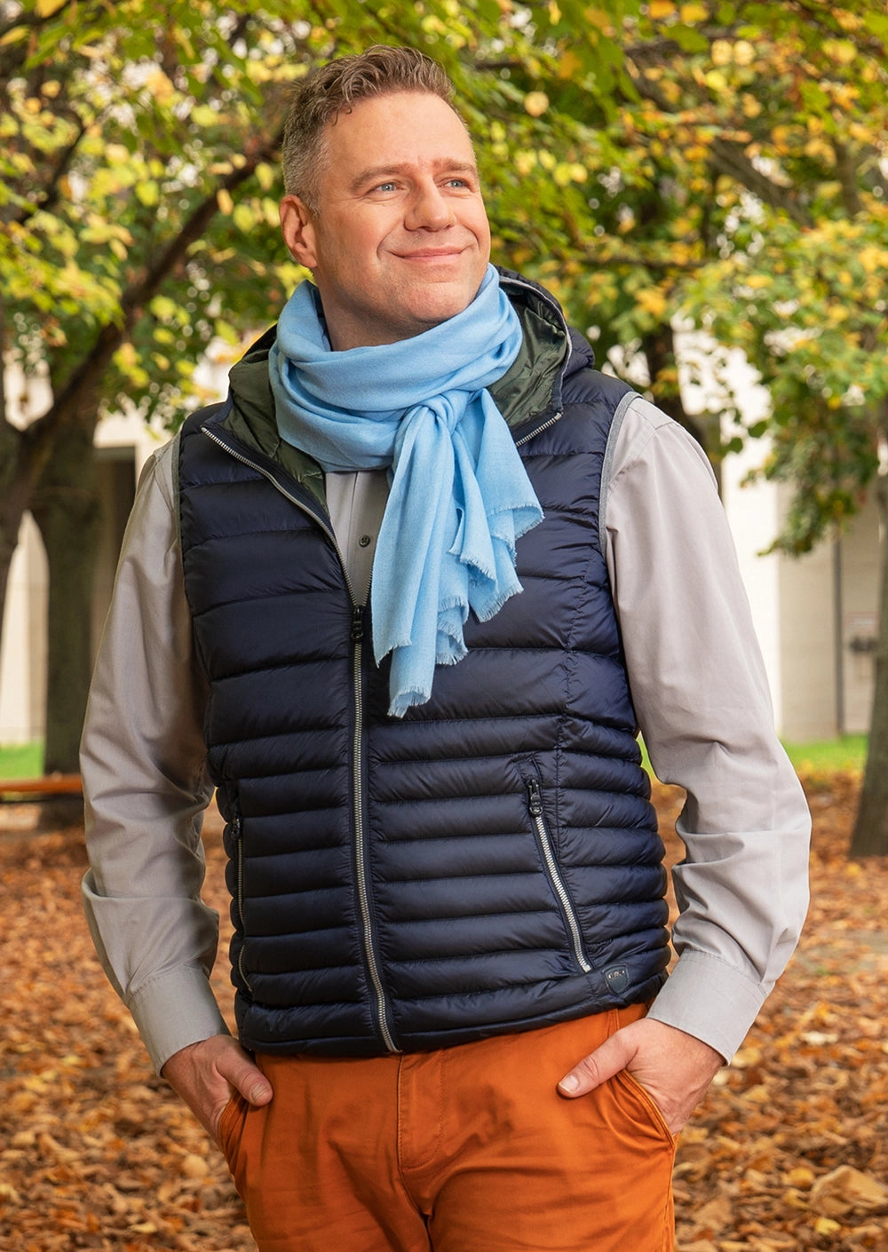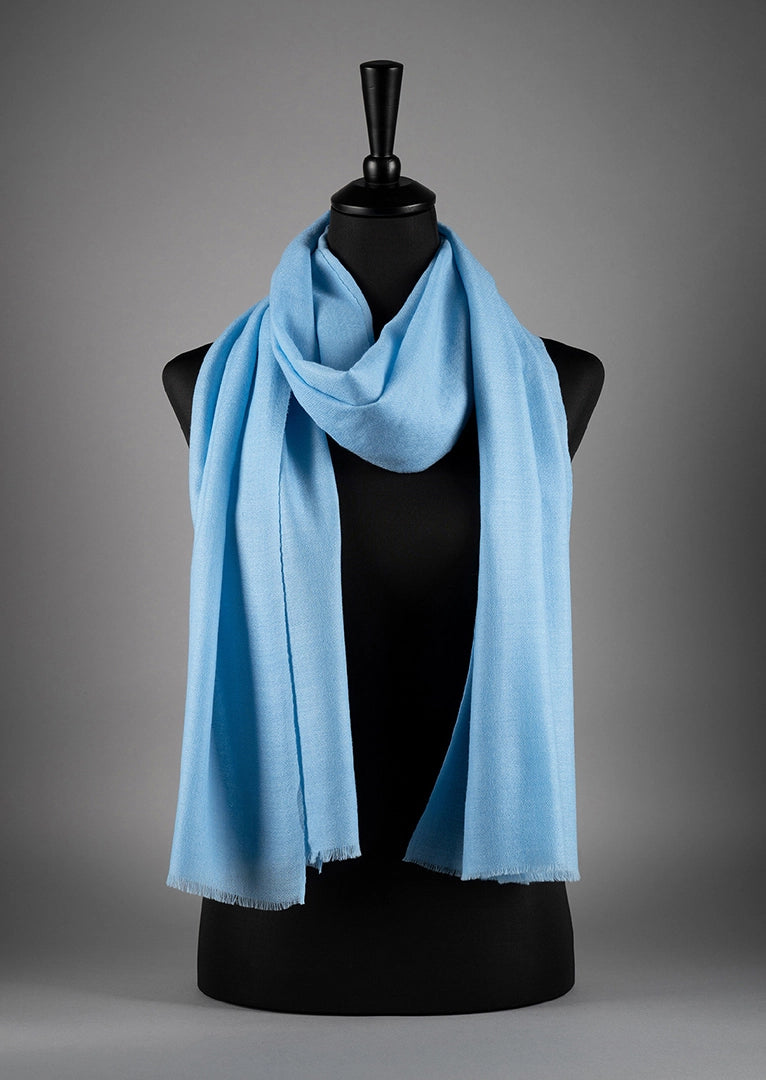 Luxuriöser, kuschelweicher, extrafeiner Kaschmir-Schal. Die himmelblaue Farbe lädt zu vielen Kombinationen ein – Ton-in-Ton oder stylisch auffällig mit Kontrastfarben.