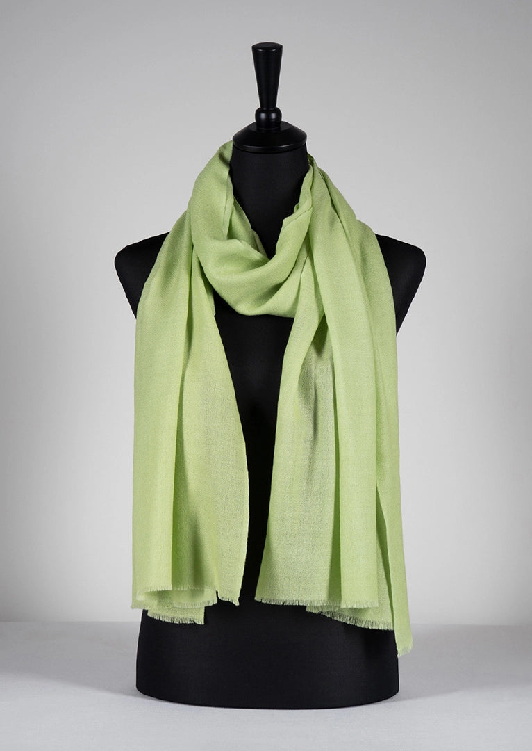 Luxuriöser, kuschelweicher, extrafeiner Kaschmir-Schal. Die frische Farbe Maigrün symbolisiert Natur, Vitalität und Freude. Wunderbar kombinierbar mit Ton-in-Ton-Garderobe oder stylisch auffällig mit Kontrastfarben.