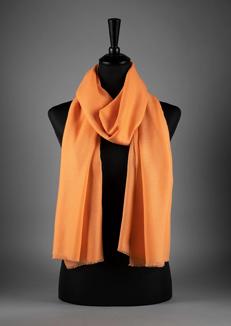 Luxuriöser, kuschelweicher, extrafeiner Kaschmir-Schal. Die leuchtende Farbe Apricot symbolisiert Licht und Wärme und zieht die Aufmerksamkeit auf Sie.