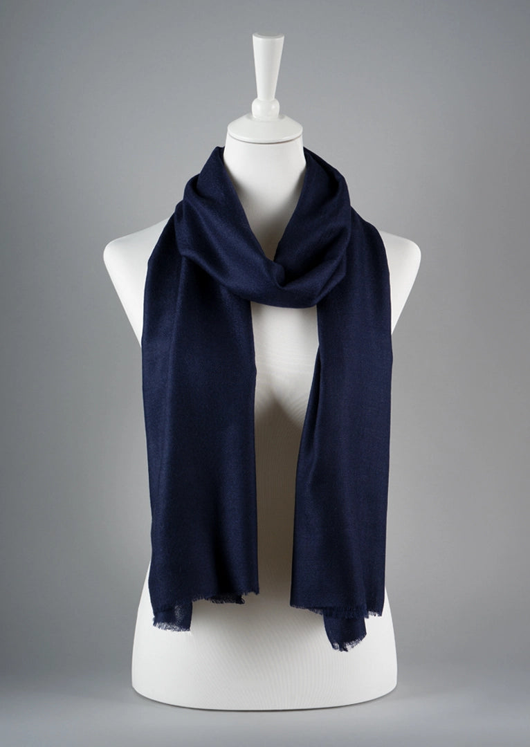 Luxuriöser, kuschelweicher, extrafeiner Kaschmir-Schal. Der Farbklassiker Nachtblau steht für dezente Eleganz, für die Tiefe des Ozeans und der Weite des Horizonts – und bleibt immer ein wenig geheimnisvoll.