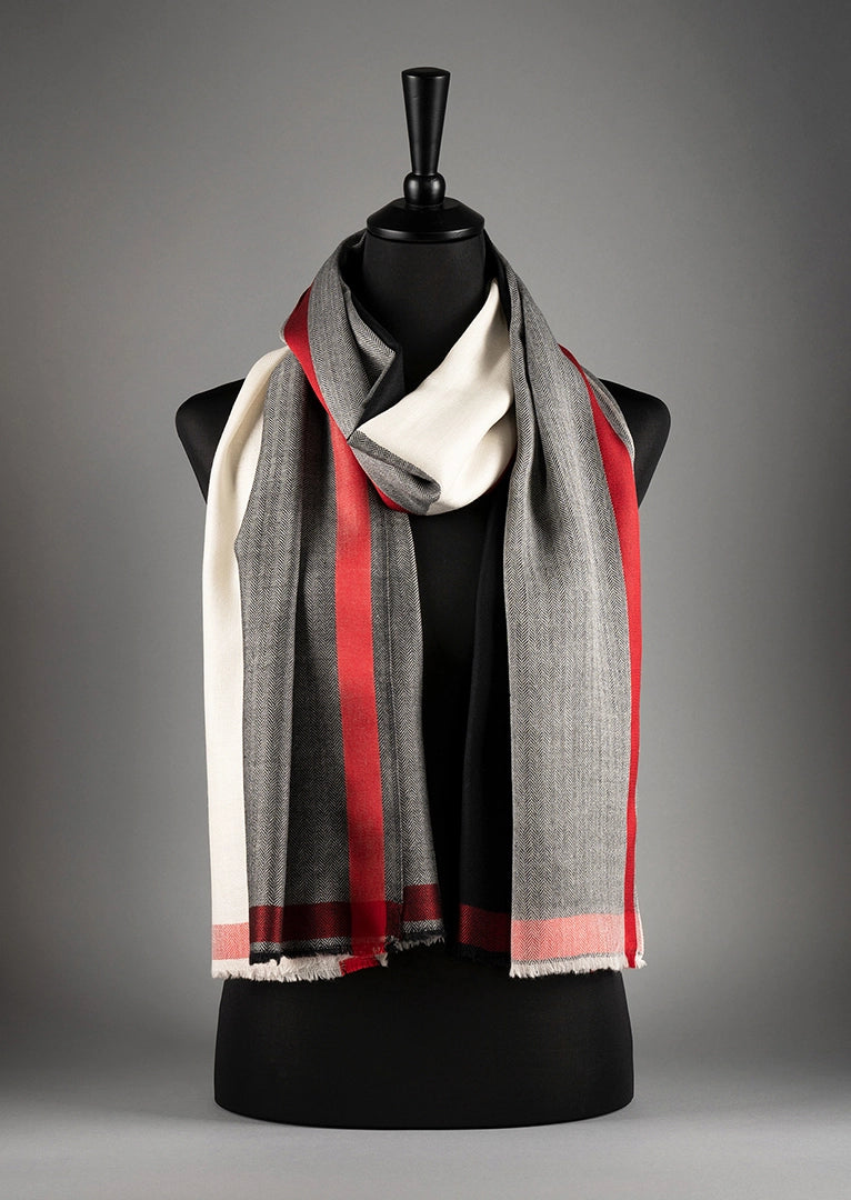 KASCHMIR-SCHAL Ecrú · Graphit · Schwarz · Zinnober-Rot