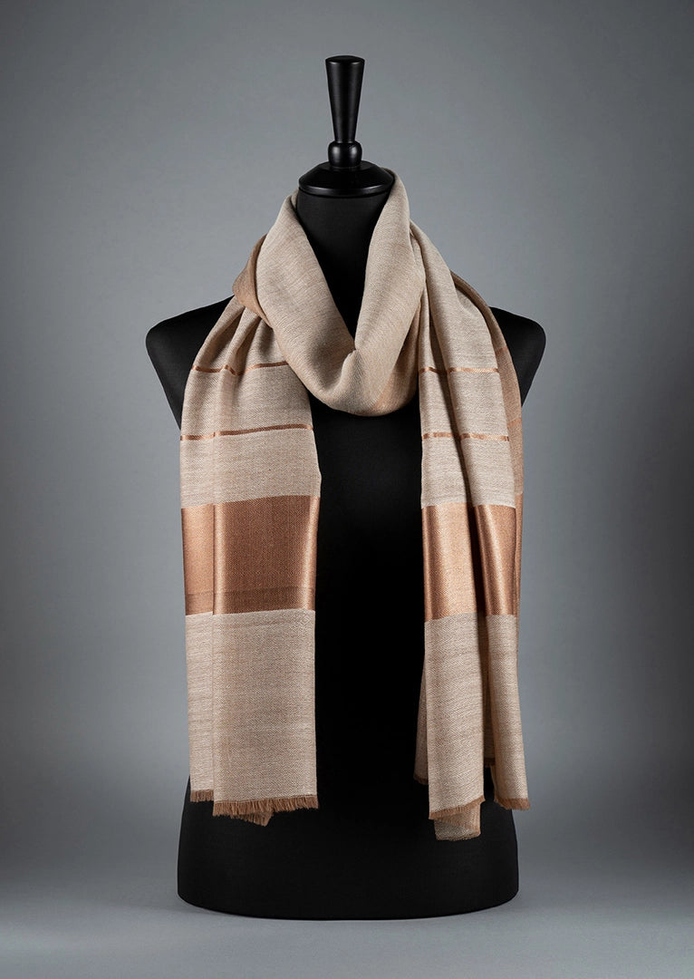 KASCHMIR-SEIDE-SCHAL Sandgrau · Kupferbraun